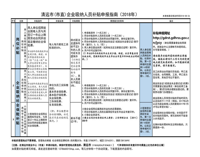 清远市(市直)企业吸纳人员补贴申报指南(2018年)