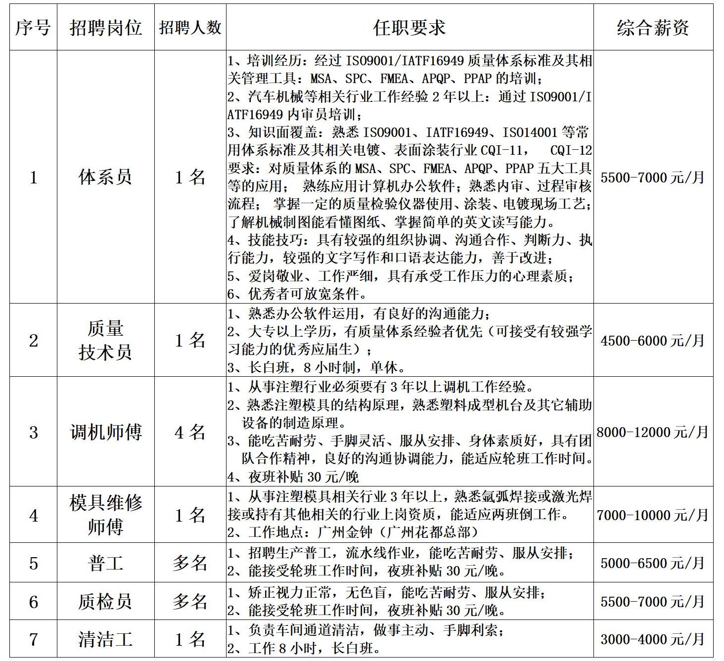 招聘职位如下: