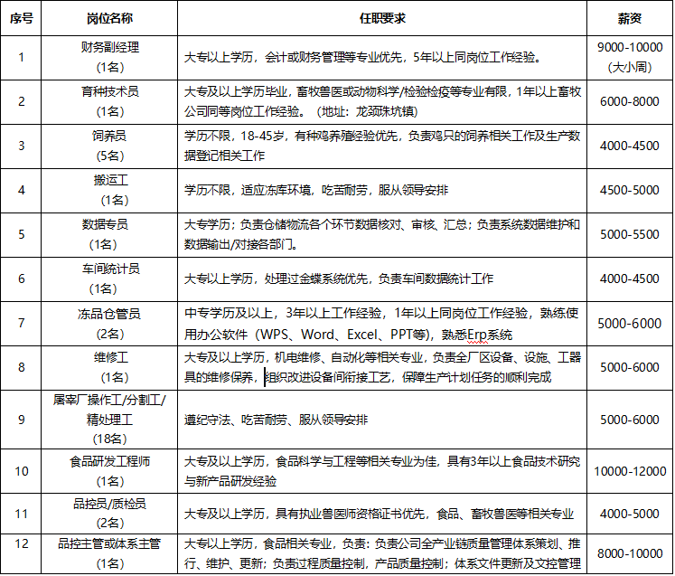 招聘岗位: